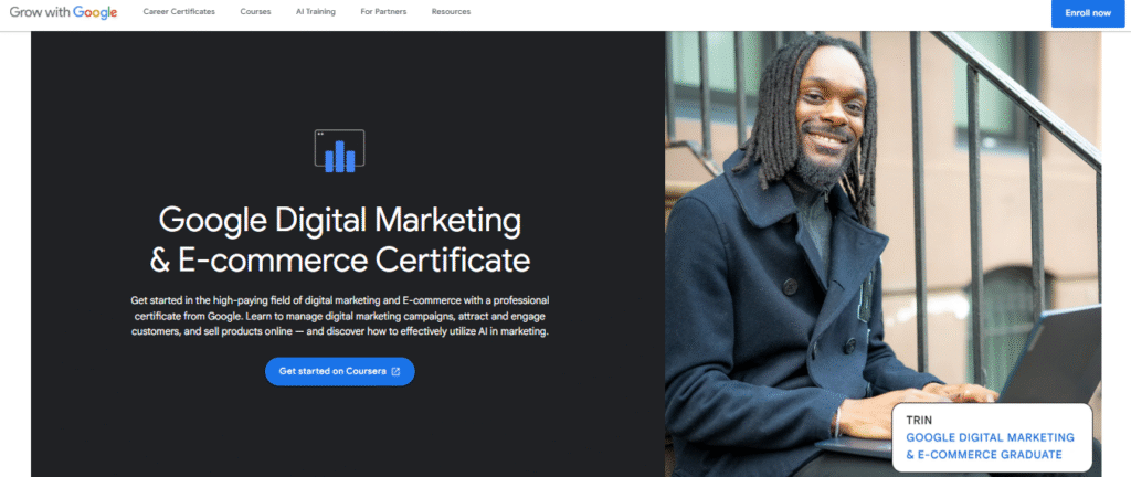 For beginners or those looking to change careers, the Google Digital Marketing & E-commerce Professional Certificate is a smart and affordable starting point. It provides a structured learning path, exposure to real tools, and the credibility of a Google-backed certificate.