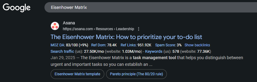Look at how companies like Asana approach this. They’re not just ranking for “Notion vs Asana.” They’re showing up for “executive summary,” “Eisenhower Matrix,” and dozens of other solution-category searches.